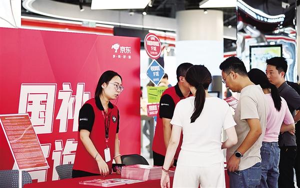 近日,天津推出24.8亿元规模资金政策支持消费品以旧换新。借助中秋假期,位于天津市南开区老城厢商圈的京东MALL超级体验店推出“以旧换新 4重补贴”等优惠,吸引众多顾客前来消费。