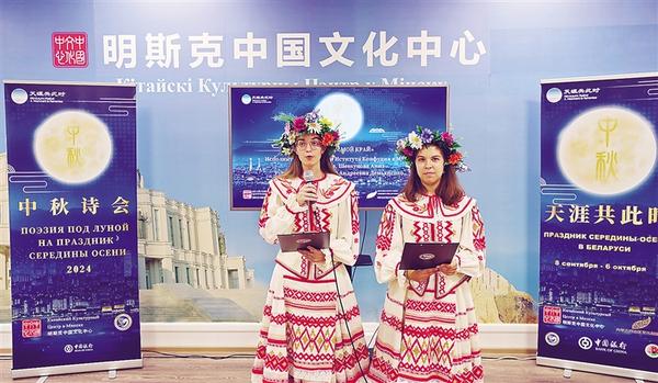 9月15日,白俄罗斯中国文化爱好者在明斯克中国文化中心朗诵以月亮为主题的诗歌。