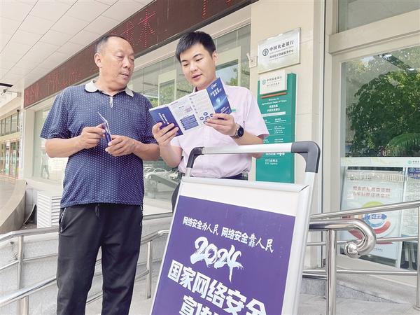 为进一步增强金融消费者的网络安全意识,9月9日,农行周口分行组织工作人员开展“网络安全宣传周”活动。图为农行周口分行工作人员向群众讲解金融信息保护知识。 王鹖鹏 程飞帆 摄