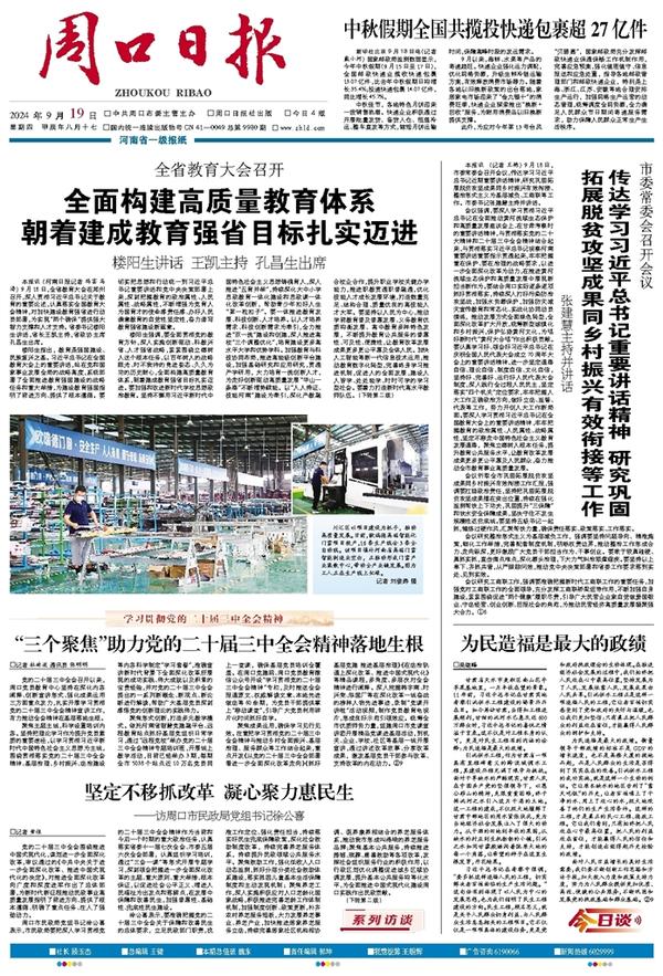 会议强调,要深入学习贯彻习近平总书记在全面推动黄河流域生态保护和高质量发展座谈会上、在甘肃考察时的重要讲话精神,与贯彻落实党的二十大精神和二十届三中全会精神结合起来,与贯彻落实习近平总书记视察河南重要讲话重要指示贯通起来,牢牢把握重在保护、要在治理的战略要求,以进一步全面深化改革为动力,在推进黄河流域生态保护和高质量发展中展现新担当新作为。要结合周口实际逐条逐项抓好贯彻落实,持续深入打好污染防治攻坚战,加强水资源保护,加强防灾减灾宣传教育和常态化、实战化协同动员演练,推动发展方式全面绿色转型,全面深化改革扩大开放,统筹新型城镇化和乡村振兴,保护弘扬黄河文化,为唱好新时代“黄河大合唱”作出积极贡献。要认真学习好、领会好习近平总书记在庆祝全国人民代表大会成立70周年大会上的重要讲话精神,进一步坚定道路自信、理论自信、制度自信、文化自信,坚持好、完善好、运行好人民代表大会制度,深入践行全过程人民民主,坚定落实“四个机关”定位要求,牢牢把握人大工作正确政治方向,做好立法、监督、代表等工作,努力开创人大工作新局面。要深入学习贯彻习近平总书记在全国教育大会上的重要讲话精神,牢牢把握教育的政治属性、人民属性、战略属性,坚定不移走中国特色社会主义教育发展道路,聚焦立德树人根本任务,提升教育公共服务水平,让教育改革发展成果更多更公平惠及人民群众,奋力推动全市教育事业高质量发展。