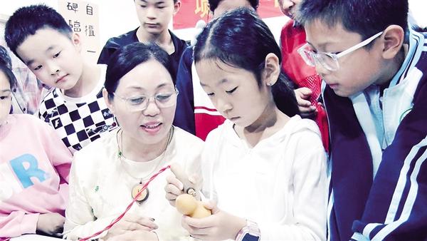 9月15日上午,由项城市精神文明建设促进中心、项城市融媒体中心联合主办的“中秋话非遗 一起来学习”文明实践活动在虹瑞艺术馆举行。图为老师指导学生制作葫芦烙画。