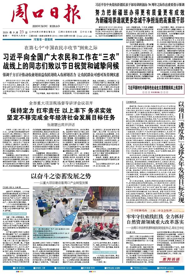 本报讯(记者 王艳 王晨) 9月21日,全市重大项目现场督导讲评会议召开,深入贯彻党的二十届三中全会精神,认真落实省委十一届七次全会和市委五届六次全会部署,总结三季度重大项目建设工作,安排部署四季度工作,动员全市上下坚定信心、保持定力,真抓实干、奋发有为,坚定不移完成全年经济社会发展目标任务,奋力谱写中国式现代化建设周口实践新篇章。市委书记张建慧出席会议并讲话。