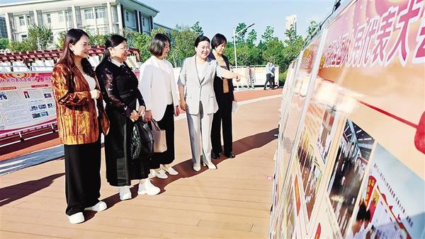 9月24日上午,沈丘县人大常委会在初心公园举办庆祝全国人民代表大会成立70周年成果展和书画作品展,为讲好人大故事、展现人大作为,坚定道路自信、理论自信、制度自信、文化自信营造了良好的社会舆论氛围。图为群众在展板前驻足观看。 记者 高洪驰 摄