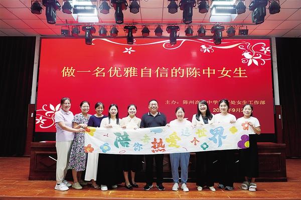本报讯 (记者 侯俊豫 通讯员 胡新春 文/图)“做优雅自信的女生。”“像花儿一样绽放,人生的道路就会花香满径。”“向张桂梅等杰出女性学习,厚植爱国情怀,增长才干、锤炼本领。”近日,在淮阳女生工作部举办的一场活动上,老师和学生纷纷上台演讲,畅谈新时代女性的成长路径和人生理想。