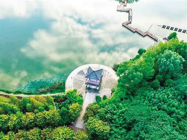 金秋时节,上清湖公园景色如画,成为人们休闲娱乐的好去处。近年来,鹿邑坚持生态优先、绿色发展,先后建设一批湿地公园、广场游园,人民群众的获得感、幸福感明显增强。图一为上清湖公园俯瞰图。图二为上清湖公园一角。图三为群众欣赏音乐喷泉。记者 侯国防 通讯员 厉佳 摄