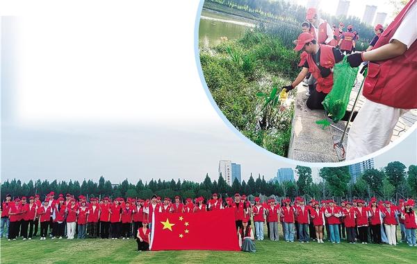 国庆假期,周口市大铁牛巾帼志愿者联合会联合河南科技职业大学,组织100名志愿者在中心城区开展志愿服务活动,表达对祖国的热爱和祝福。