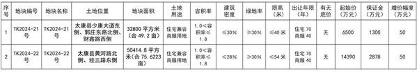 TK2024-21地块:2024年11月1日9时30分;TK2024-22地块:2024年11月1日9时50分。