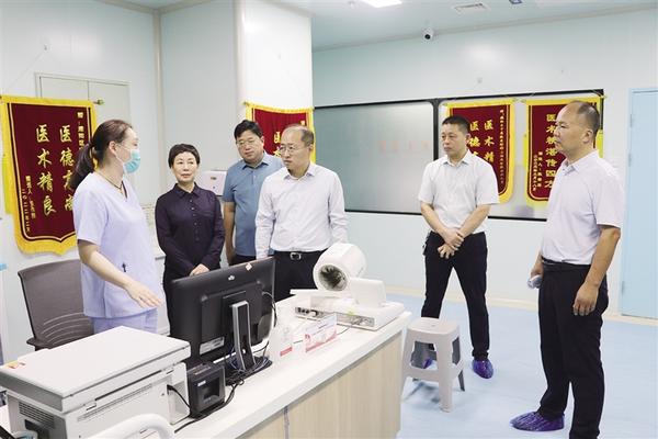 近日,河南省医疗保障局医药服务管理处处长申成峰(右三)一行来到淮阳区中医院,了解医保服务下沉、智能场景监控应用、中医日间病房创建等工作开展情况。 近年来,淮阳区医疗保障局积极落实各项医保惠民政策,不断加强医保经办体系建设,提升医疗保障能力和服务水平,持续提升参保群众“幸福指数”。 通讯员 豆孝东 摄