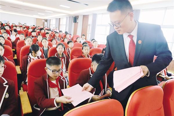 为增强青少年的法治观念,10月8日,川汇区人民法院党组书记、院长徐林一行来到周口市六一路小学,以“与法同行,护航成长”为主题,为该校师生上了一堂生动的法治课。图三为该院干警向学生发放法律知识宣传页。通讯员 马殿力 王婉婉 摄