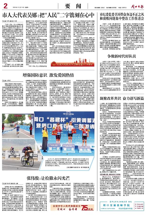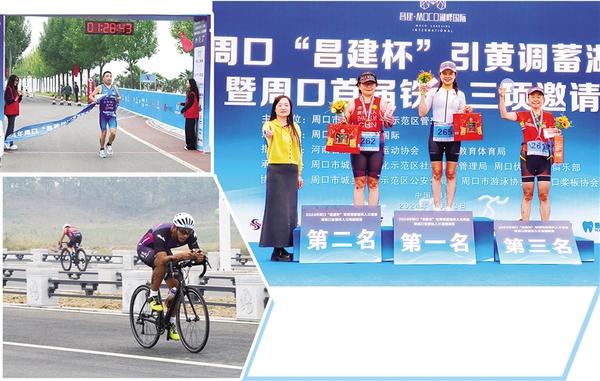 10月13日,美丽的引黄调蓄湖畔,进行了一场速度与耐力的较量,来自全国各地的200名参赛者在2024年中国·周口“昌建杯”引黄调蓄湖铁人三项赛暨周口首届铁人三项邀请赛上挥汗竞技、挑战自我,充分展现了体育竞技的包容性与多样性。图①为参赛者到达终点,图②为参赛者参加比赛,图③ 为获胜者站上领奖台。 记者 姬慧洋 通讯员 张一新 周钰凯 摄
