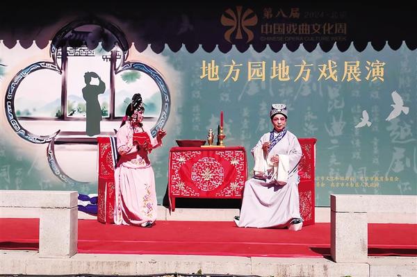 近日,县道情艺术保护传承中心的演员到北京参加第八届中国戏曲文化周地方园地方戏展演活动,《王金豆借粮》《张廷秀私访》《双拜寿》等经典剧目赢得首都戏迷的阵阵掌声。图为演出现场。 记者 张洪涛 通讯员 张天印 摄