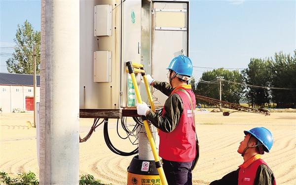 10月6日,国网扶沟县供电公司焦裕禄共产党员服务队深入扶亭街道张庄村秋粮收割和晾晒现场,主动了解用电需求,巡检用电设施,助力秋粮颗粒归仓,彰显企业担当。记者 金月全 通讯员 张鹏举 摄