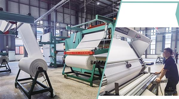 位于扶沟县的华和年产 50000万米胆布项目,总投资约2亿元,可年产化纤梭织面料、里料、胆料合计 50000万米。项目满产达效后,可实现年产值5亿元、利税3500万元,安排就业120人以上。图为生产现场。记者 王映 摄