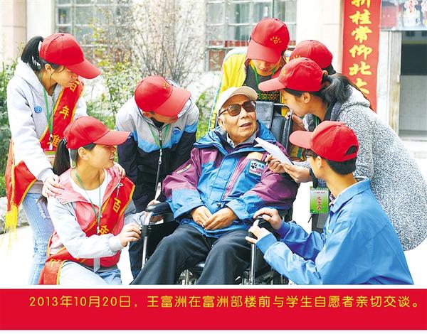 尽管年老体弱,但2013年10月19日至21日,王富洲在女儿王毅陪伴下,还是回到阔别多年的母校淮阳中学看望师生。