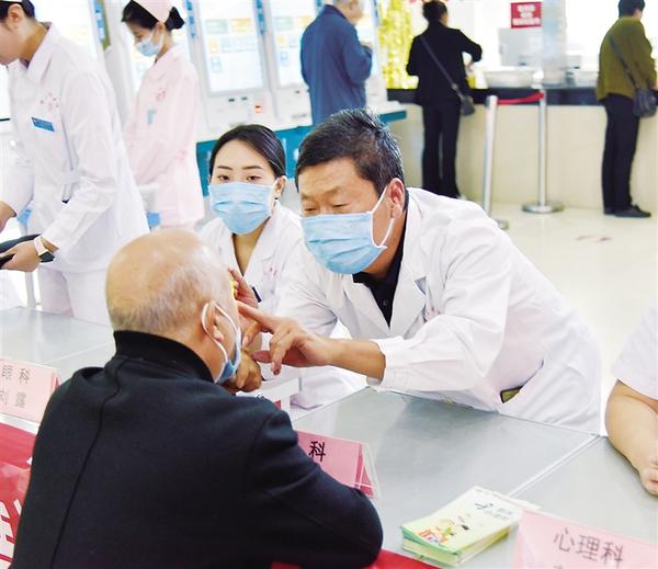 10月10日是第33个世界精神卫生日,也是第24个世界视觉日。当日,周口市中医院在医院门诊大厅开展义诊活动,为群众免费测量血压、血糖,提供耳穴压豆等中医适宜技术体验服务,发放科普知识宣传手册。图为义诊活动现场。