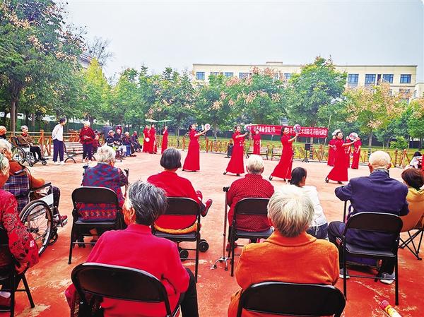 今年10月是全国第15个“敬老月”。为弘扬中华民族尊老敬老传统美德,让广大老年人切实感受到党和政府的关怀、温暖,10月16日,县委老干部局联合县红十字会、敬慈医院到县社会福利中心养老院开展义诊和文艺演出活动。图为老年人观看文艺演出。