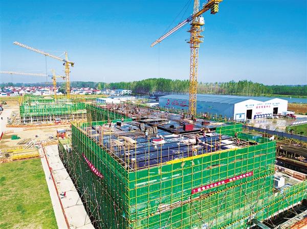 10月24日,周口港中心作业区内,工人们正紧张建设河南交投周口境港航智能调度中心。在建的河南交投周口境港航智能调度中心总建筑面积20958平方米,今年6月份动工,预计2025年7月份全部建成。记者 梁照曾 摄
