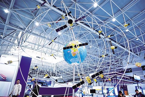 10月24日,参观者在2024东亚海洋博览会上观看北斗卫星导航系统工作模型。 当日,2024东亚海洋博览会在山东省青岛市开幕。本届展会以“从蔚蓝到未来——蓝色·海洋·科技”为主题,总展览面积约60000平方米,设立海洋新材料、海工装备与海洋科技、海洋应急与救援产业和山东海洋发展成果四大展区,吸引了国内外500余家相关机构参展。 新华社记者 李紫恒 摄