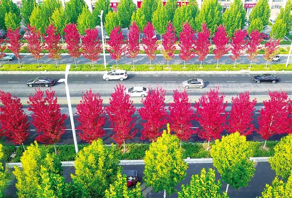 10月29日,车流经过中心城区中原路中段,道路两侧的绿化树木色彩绚丽赏心悦目。近年来,我市园林规划设计科学实用,市容市貌得到了大幅度提升。