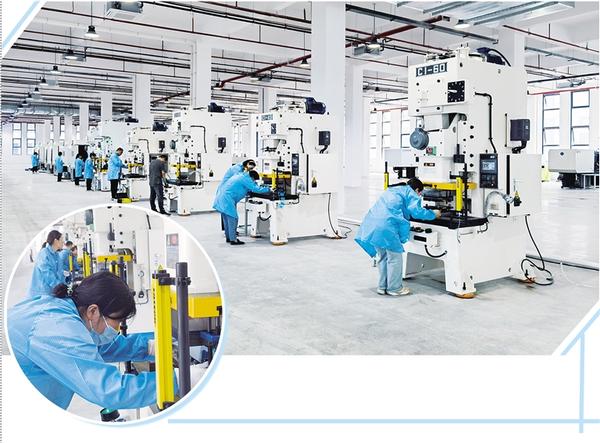 位于沈丘县的河南培阳科技发展有限公司阳光零碳装备制造产业项目,总投资8.8亿元,一期为动力电池、储能电池模组组件生产线,二期为年产100万KWh储能Pack生产线。目前,该项目已建成投产。图为工人在车间里紧张工作。 记者 王映 摄