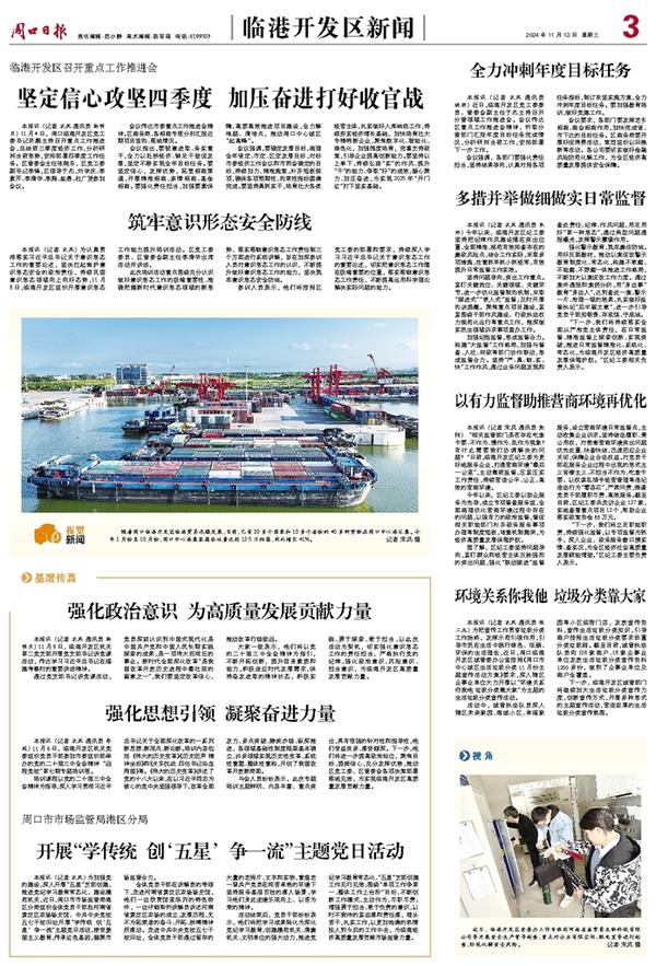 随着周口临港开发区临港贸易迅猛发展,目前,已有20多个国家和10多个省份的40多种货物在周口中心港汇集。今年1月份至10月份,周口中心港集装箱吞吐量达到12.5万标箱,同比增长41%。记者 宋风 摄