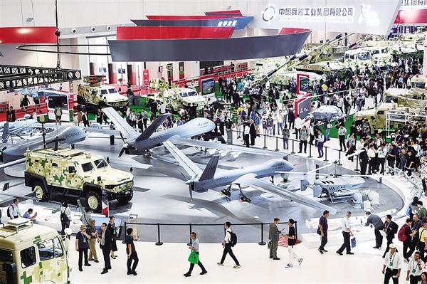 11月13日,观众在航展现场内观看多款无人机装备。 在珠海举行的第十五届中国国际航空航天博览会上,一批先进国产无人机和反无人机装备集中亮相。 新华社记者 梁旭 摄