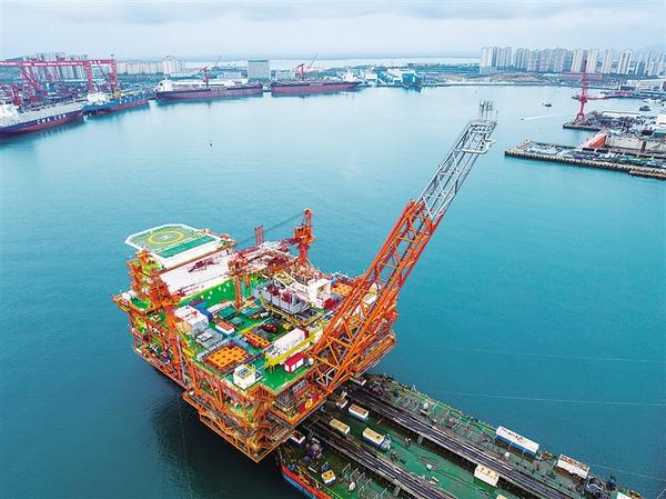当日,全球最大变质岩油田渤中26-6油田一期开发项目中心平台在山东青岛完成装船作业,后续将赴渤海南部海域,进入海上安装和联调阶段,这标志着该项目陆地建造完工。