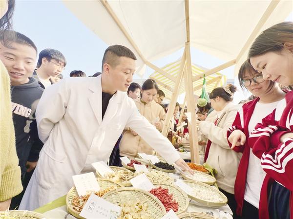 此次活动的现场展区分为四大板块,分别是闻香识药展区、望闻问切展区、药食同源展区、中药文化传承创新展区。整个展区仿佛一座桥梁,让学生近距离、全方位地感受到中医药文化的博大精深与无限活力。