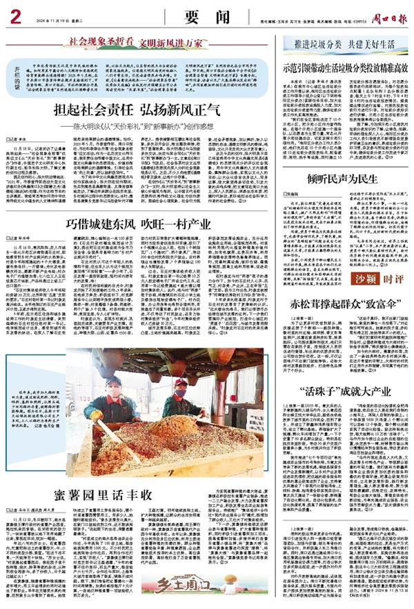 中华优秀传统文化是中华民族的根和魂。如何用其中蕴含的人文精神和道德规范培育熏染群众道德情操?2023年5月起,在中共周口市委宣传部出题并直接谋划下,市委宣传部、周口日报社、市社科联联合开展“社会现象圣哲看”系列道德文化阐释普及活动,以征文为起点,让圣哲的观点与当前社会现象连接起来,让道德文明风尚更好地融入人们日常生活,引发读者强烈共鸣共情。日前,《让善意流淌起来——“社会现象圣哲看”优秀征文选编》出版发行并捐赠至全市公共阅读空间和“农家书屋”,“社会现象圣哲看 文明新风进万家”系列活动也在全市同步开展。即日起,周口日报社全媒体平台开设《社会现象圣哲看 文明新风进万家》专题专栏,倾听作者、读者以及广大基层群众发出的“群响”,共同致敬始终指引我们前行的那道思想之光。