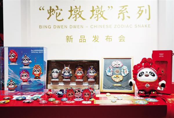 这是11月19日拍摄的“蛇墩墩”系列新品。 当日,北京冬奥会吉祥物“冰墩墩”蛇年新春特别版——“蛇墩墩”系列新品在北京发布。据介绍,“蛇墩墩”以民间传说《白蛇传》为灵感来源,头部装饰以传统京剧中的“白娘子”和“小青”造型为蓝本,有“灵蛇献瑞”的寓意。本次活动现场发布的“蛇墩墩”系列新品包括毛绒玩具、徽章、钥匙扣等,其中5个“蛇墩墩”手办备受关注。它们手持如意、葫芦、寿桃、桃花、元宝等道具,分别用福、禄、寿、喜、财表达“五福临门”的美好祝愿,传递幸福与吉祥。新华社记者 张晨霖 摄