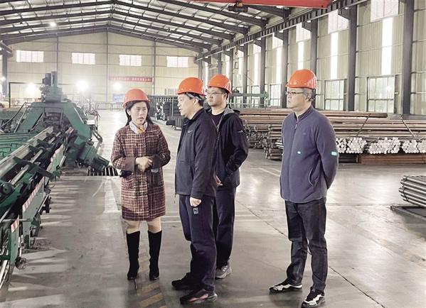 近日,农行周口分行成立支持小微企业融资工作专班,提高金融支持的精准性,切实缓解小微企业融资难、融资贵问题。图为该行党委委员、副行长白宇(左二)带领工作专班成员走访商水县千王钎具公司,倾听企业诉求,了解融资需求。程飞帆 冯振涛 摄
