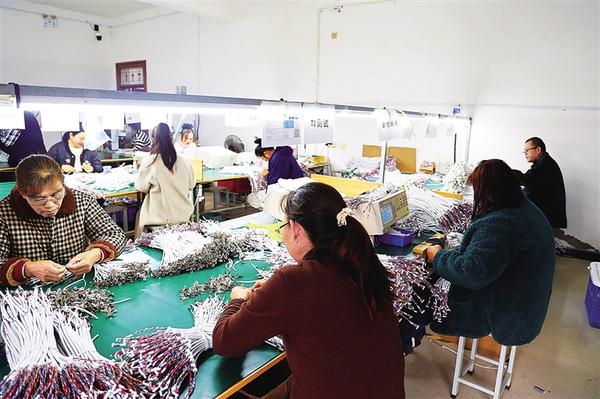 在周口市城乡一体化示范区许湾街道田庄行政村牛口自然村,牛永正、张小壮夫妻二人怀着对家乡的热爱和对未来的憧憬,投资40多万元创办了瑞森电子代工厂。30多名村民在这里就业,月均收入3000多元,真正实现了工作家庭两不误。图为村民正在车间内紧张工作。记者 刘俊涛 摄
