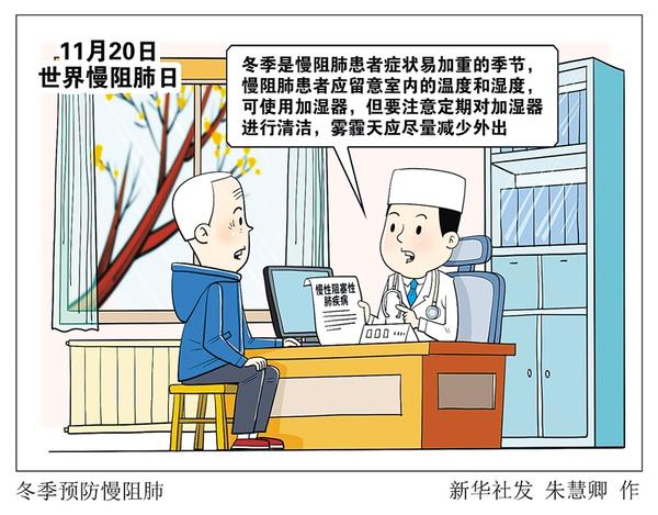 11月20日是第23个世界慢阻肺日。冬季是慢阻肺患者症状易加重的季节。专家表示,慢阻肺患者应留意室内的温度和湿度,可使用加湿器,但要注意定期对加湿器进行清洁,雾霾天应尽量减少外出。新华社发 朱慧卿 作