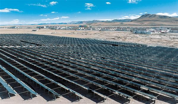 鸟瞰措勤县城区清洁能源集中供暖特许经营项目的光伏阵列(无人机照片,11月20日摄)。 西藏自治区阿里地区措勤县县城平均海拔约4700米,一年中有200多天需要供暖。今年9月,措勤县城区清洁能源集中供暖特许经营项目投入运行,供暖面积达到29.23万平方米,实现了稳定供暖。 新华社记者 姜帆 摄