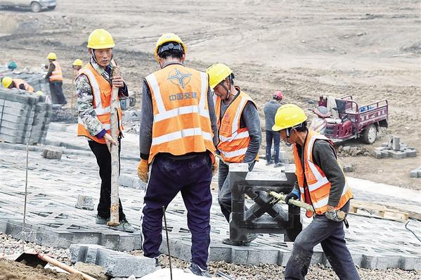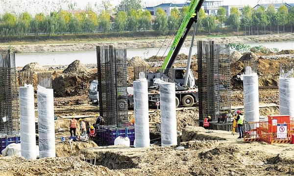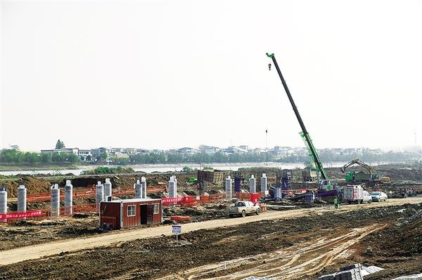 周口港中心港区中心作业区是全省“两河两港”建设的重大项目,也是周口打造国家内河航运重要枢纽的强劲支撑。目前,退建大堤、码头桩基以及配套工程等正在加紧建设中。记者 王映 摄