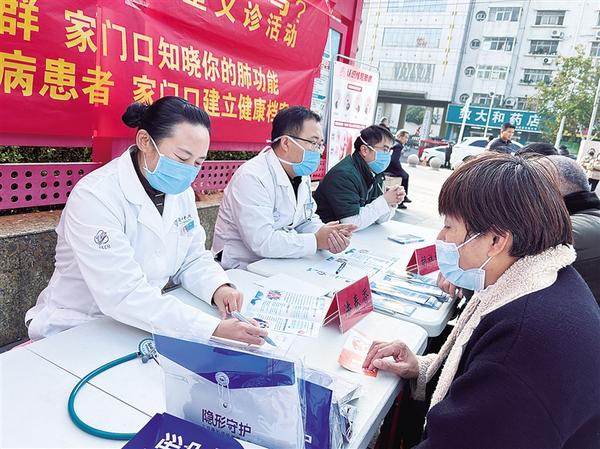 本报讯(记者 郑伟元 文/图)近日,周口市中心医院医务人员在该院人民路院区门前开展“世界慢阻肺日”义诊活动。