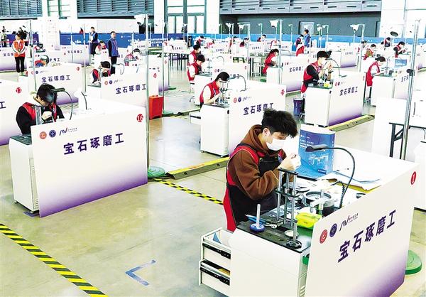 11月27日,选手在宝石琢磨工项目比赛中。 当日,由人力资源和社会保障部、中华全国总工会、中国轻工业联合会共同主办的第四届全国工业设计职业技能大赛决赛在郑州市航空港区开幕。据了解,本次大赛共设置室内装饰设计师、包装设计师、玩具设计师、灯具设计师、宝石琢磨工、小型家电制造工六大赛项。 新华社记者 李嘉南 摄