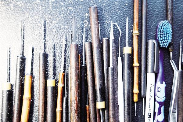 “整个雕刻过程像在走钢丝绳,越是到最后,越不敢下刀,大气都不敢喘,唯恐一刀下去,前功尽弃。”牛豪说,核雕属于微雕艺术,对于从业者来说,只有心静才能做到手稳。他一直在寻找那种由心而生、随感而雕的平静感,视觉、触觉交融在刀锋和桃核之间,完全沉浸,静到忘我。