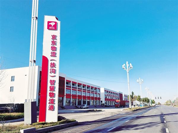 近年来,扶沟县通过完善快递物流体系,补齐农村物流基础设施短板,整合邮政、快递等物流资源,以扶沟县乡村振兴物流园为中心,构建县、镇、村三级物流配送体系,促进工业品下乡、农产品进城,畅通流通渠道,增强乡村消费能力。图为京东物流(扶沟)智慧物流港一角。