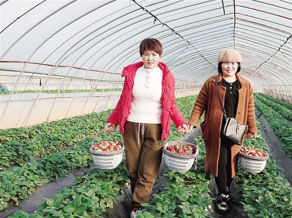 “我们年龄大了,体力也跟不上了,没法外出打工,在这儿打理草莓基地,活儿不累,离家近,一天收入几十元。大家一边干活儿,一边唠家常,心里很舒坦。”在草莓基地打工的留守妇女张桂梅笑着说。