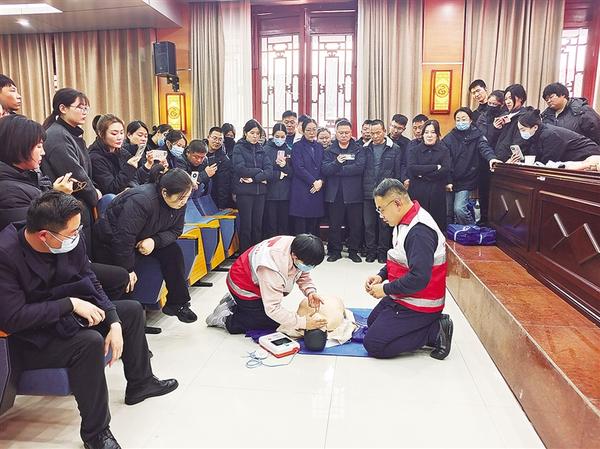 本报讯(记者 侯俊豫 通讯员 薛锋 文/图) 为全面普及应急救护知识和技能,提高景区员工应对突发事件的能力,推进太昊陵景区红十字应急救护站建设,叫响淮阳文旅品牌,11月25日,区红十字会开展应急救护培训进太昊陵景区活动。110余名景区员工参加此次培训。