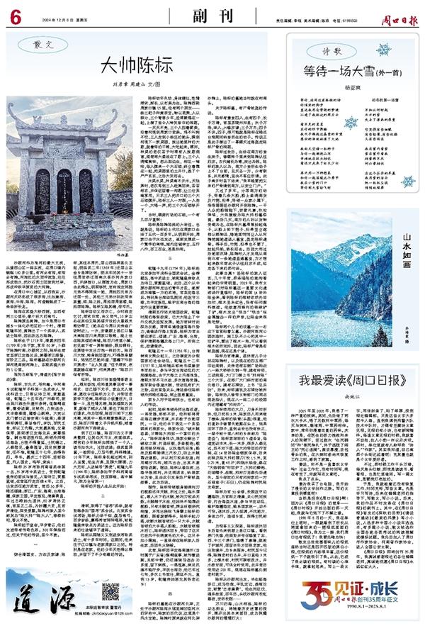 陈标从沙颍河出发,半生蹈海涉江,戎马倥偬,平乱定边,盖棺论定,被赞“忠孝廉勇”。他生死征伐,魂系故里,百年后,头枕沙颍河长虹碧波,安然长眠……