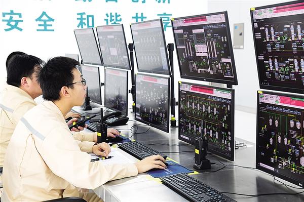 益海嘉里(周口)生物科技有限公司200万吨玉米精深加工项目总投资30亿元,占地面积600亩,主要建设生产车间、研发楼、仓储中心及净水设施等。项目分两期实施,一期主要建设70万吨淀粉、20万吨玉米胚芽油和15万吨果葡萄糖浆、10万吨麦芽糖生产线。目前,该项目一期已建成投产。左图为该公司生产车间一角,右图为该公司技术人员在中央控制室严密监控各生产环节。