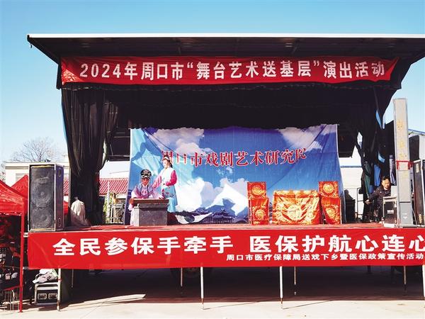 本报讯 (记者 邱一帆 通讯员 宋瑞 文/图) 为进一步提高群众参保缴费主动性,推进全民参保工作,近日,周口市医疗保障局联合周口市戏剧艺术研究院到项城市新桥镇北李营村,通过戏曲这一群众喜闻乐见的形式,宣传医保政策,引导群众积极参保。
