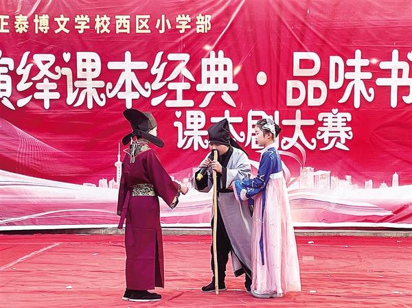 近日,项城市正泰博文学校西区小学部举办一场别开生面的课本剧大赛。学生们身着华丽服装,变身小演员,过了一把戏瘾。 记者 张志新 通讯员 李丹 郭顺舟 摄