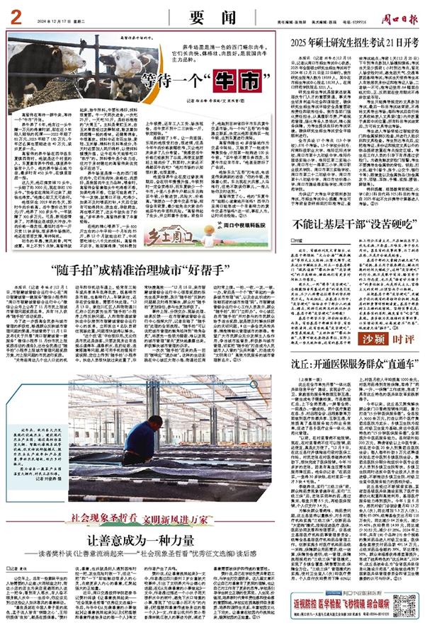 樊朴说,自己在学校负责共青团工作,与学生打交道较多。这几篇文章不仅让自己对善意有了更深的理解,也让自己对工作有了更多的思考。学校是引导学生树立正确的世界观、人生观、价值观,培养新时代青年责任感和使命感的重要阵地。学校应在提高教师自身素质、培养和谐师生关系、丰富校园文化上下功夫,让善意在校园内外流淌起来,凝聚校园的正能量。②15