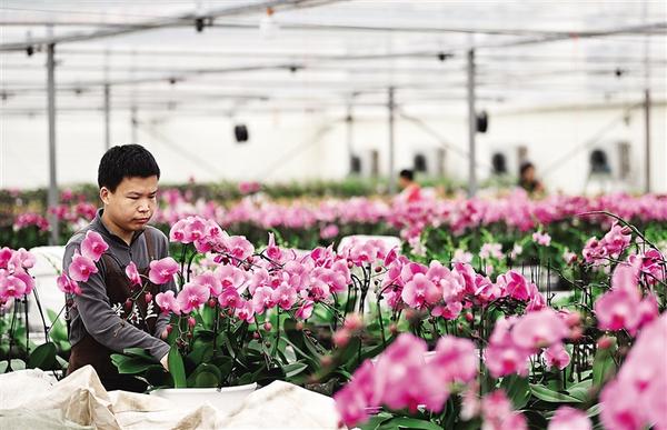 12月19日,花农在温室里对将要出售的蝴蝶兰进行检查。 天津市西青区张家窝镇农业产业园区占地面积5000余亩,以种植花卉、有机果蔬等为主导产业,是天津市现代农业重点示范园区。眼下,园区内的蝴蝶兰、草莓等花果都到了集中上市的时节,温室大棚内一派繁忙景象。 新华社记者 李然 摄