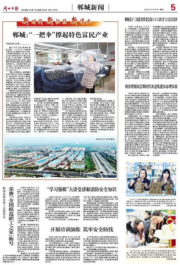 县里有伞业产业园,但是乡村劳动力每天往返不太现实。于是,该县以伞业产业园为龙头,在每个乡镇设立工厂。针对农闲、农忙不定的特点,农村劳动力可以在家钉扣、装伞骨等,让就业形式更加灵活。全县现有制伞企业120家,在乡村设立240个车间,辐射2000多个班组,使群众实现在家门口就业,使制伞业成为郸城振兴县域经济的一条新路子。