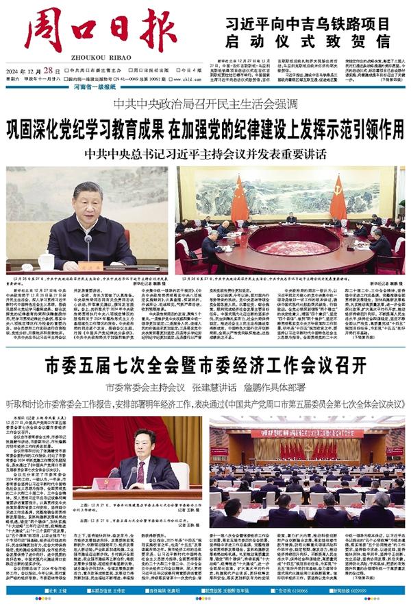 本报讯 (记者 王艳 李凤霞 王晨) 12月27日,中国共产党周口市第五届委员会第七次全体会议暨市委经济工作会议召开。