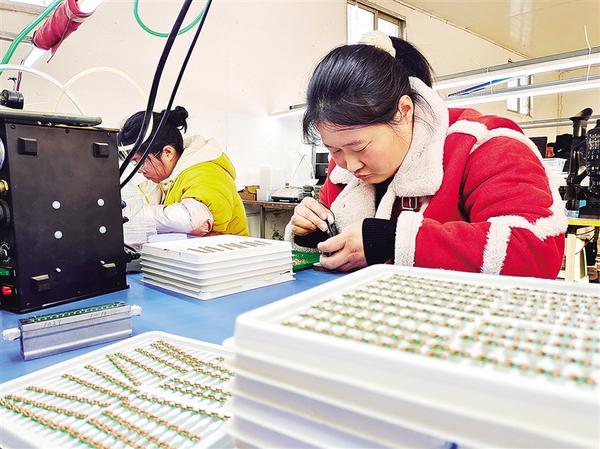 12月28日,在扶沟县百顺电子科技有限公司生产车间,员工正在赶制手机配件。该企业位于扶沟县汴岗镇强陵岗村,以村中废弃小学校舍为基础创办,解决了10余名留守妇女的就业问题。据了解,近年来,汴岗镇把产业振兴作为乡村振兴的重中之重,不断壮大村集体经济。 记者 金月全 摄